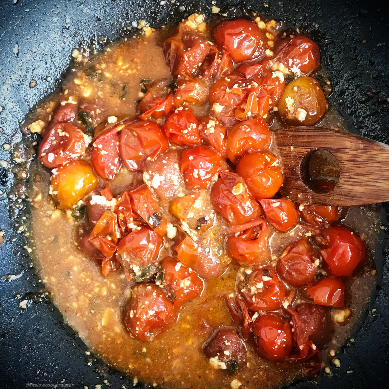 Another 30 minutes or less skillet recipe! I don’t always slow cook:-) This is a great summer side dish. Picnic, family dinner, you can serve this tomatoes & feta dish with almost any meal.