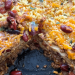 Slow cooker chili casserole is chili flavored, cheesy, tortilla-layered casserole. Perfect for busy weeknights, Sunday dinners, or game-day events, this casserole allows you to enjoy the flavors of chili but in casserole form. Ground beef, sausage, red kidney beans, diced tomatoes, slow cook together with a homemade chili seasonings. Add in tortillas and cheese and you have a comforting crockpot meal the entire family will enjoy.