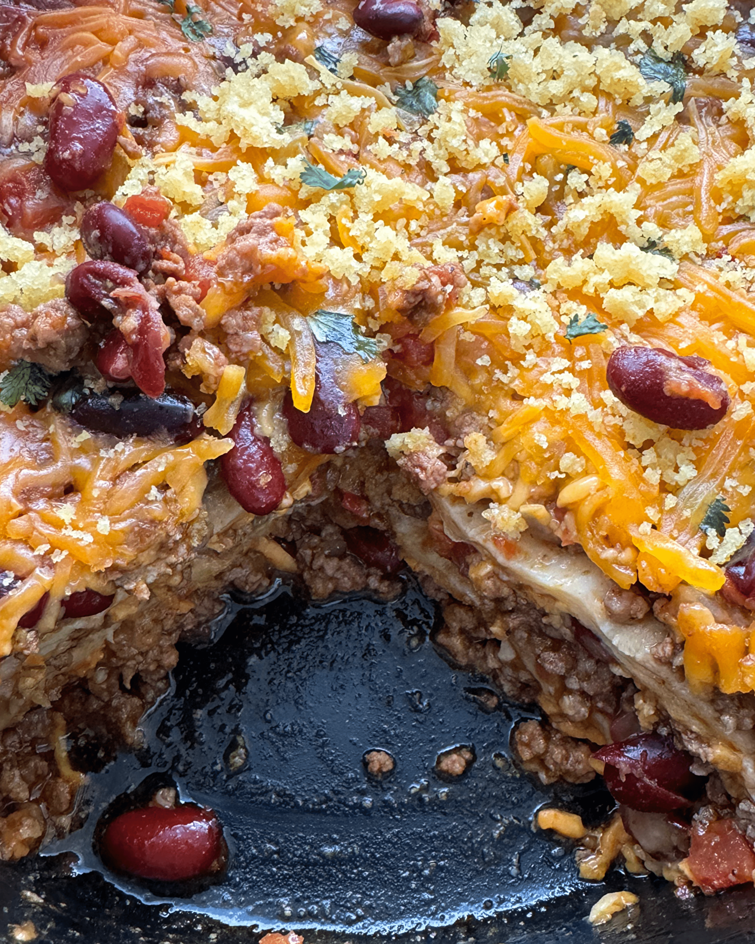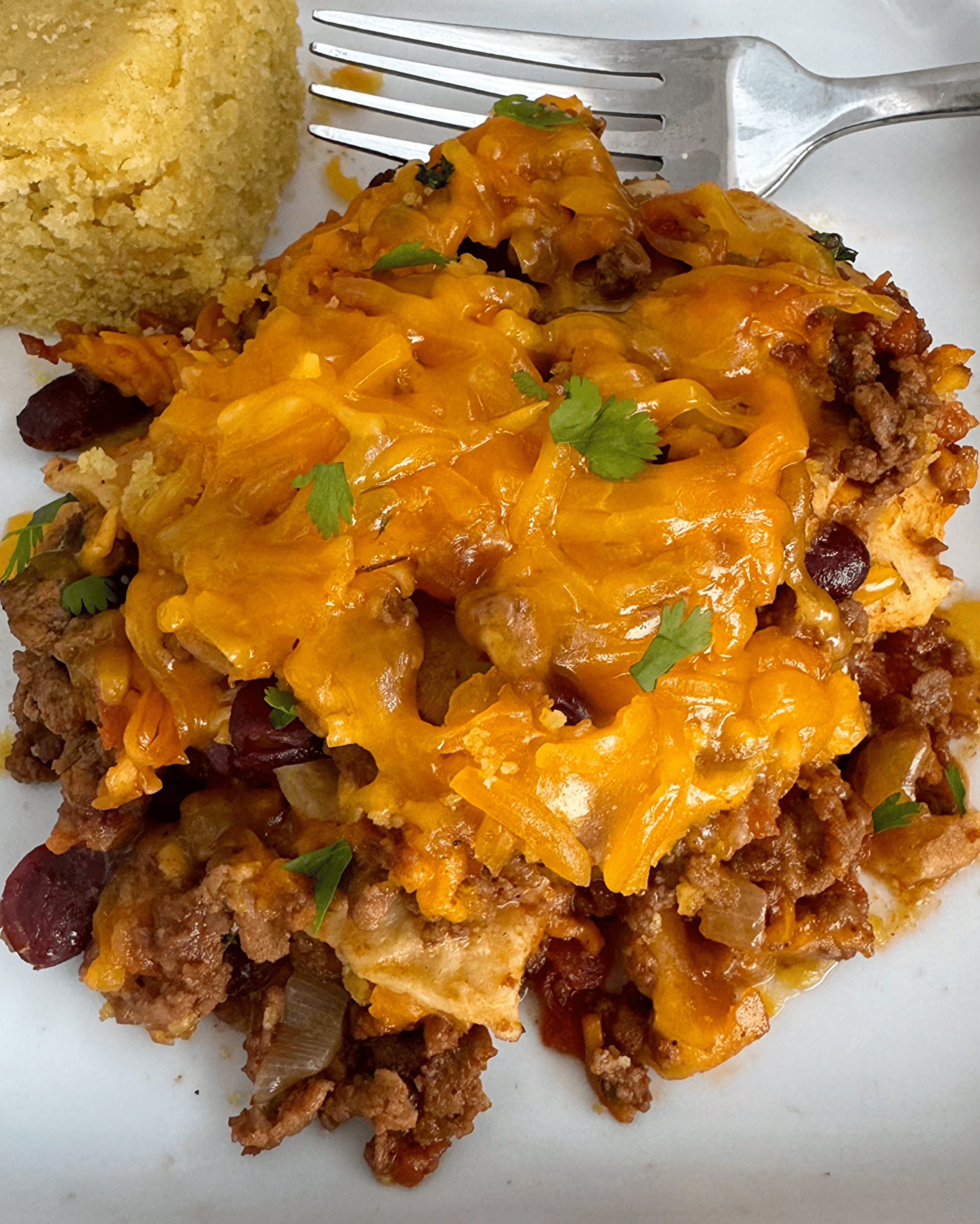 Nope! Don’t eat red meat? Make this a turkey chili casserole? Or skip the sausage and use all beef.