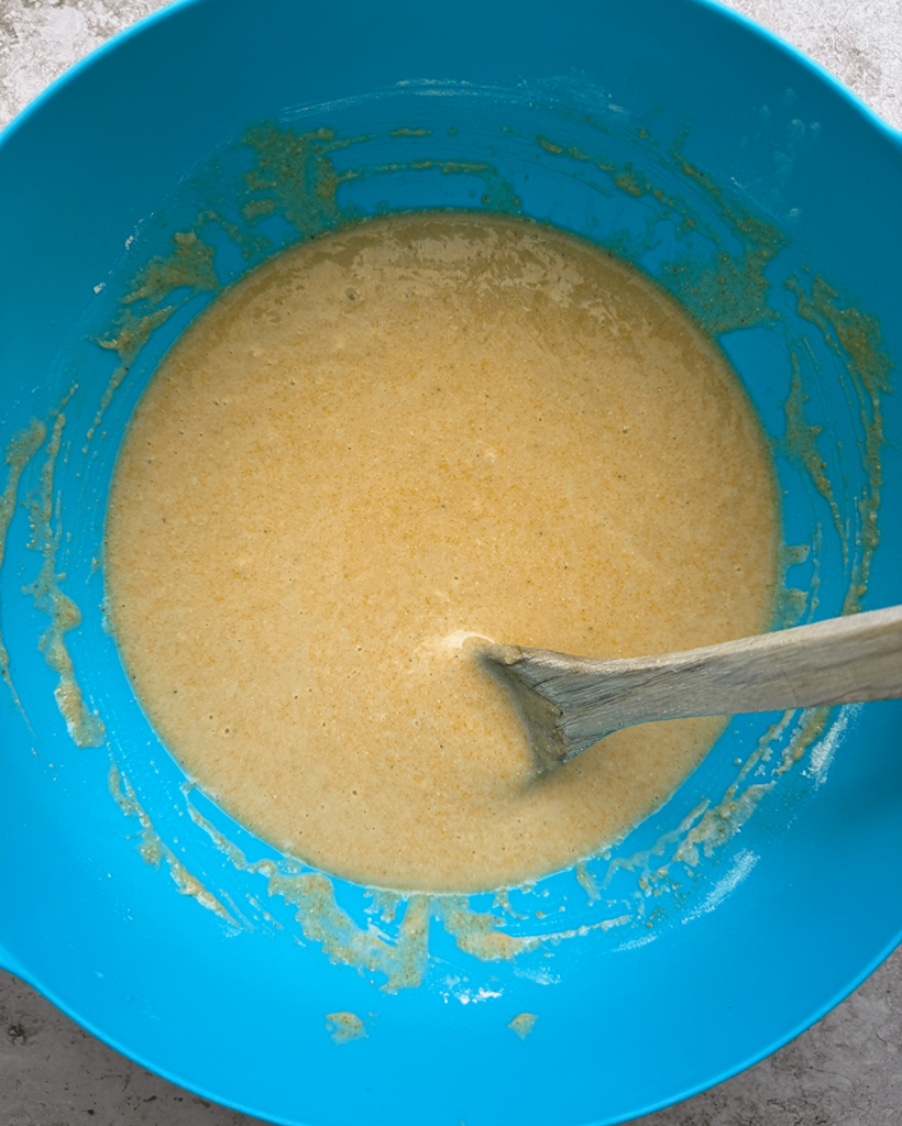- Spray the slow cooker generously with cooking spray. Pour in the cornbread mixture.