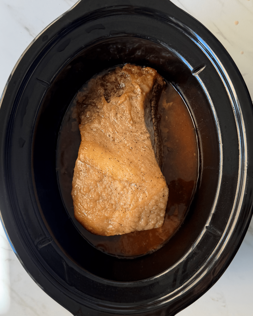 For the Instant Pot, it’s included as an instruction. For the slow cooker, searing your meat before adding it to the slow cooker is listed as optional. As you can see, I did not sear my brisket beforehand. I will always leave this as a recommended but optional step. I have made plenty of briskets and roasts in the slow cooker without searing them beforehand and they came out just fine.