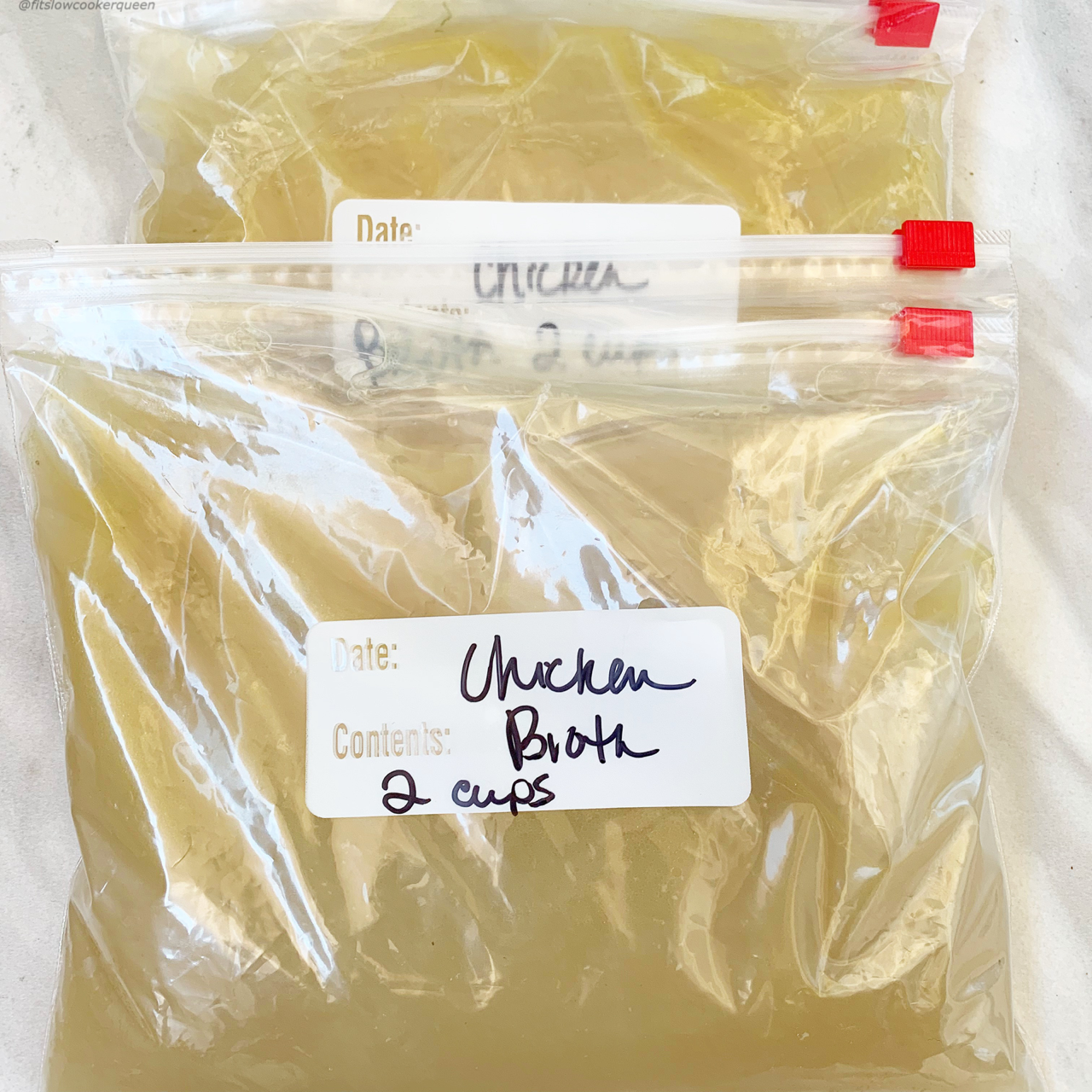 Leftover chicken broth can be stored in an air-tight container in the refrigerator for 3-4 days. To freeze leftover chicken broth, let the broth cool completely. Once cooled, add the broth to an air tight container or freezer-friendly plastic bag. Store the chicken broth in your freezer for up to 2 months. To reheat frozen broth you have two options. You can either thaw the broth overnight in the refrigerator OR add the broth directly to the slow cooker or Instant Pot & thaw on the warm setting!