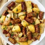 To make this Irish Dublin coddle whole30 compliant, simply use compatible sausage and bacon. My go-to is Naked Bacon. Their sugar-free breakfast sausage & bacon pairs perfectly in this recipe. For a list of Whole30 compatible sausage brands, click HERE.