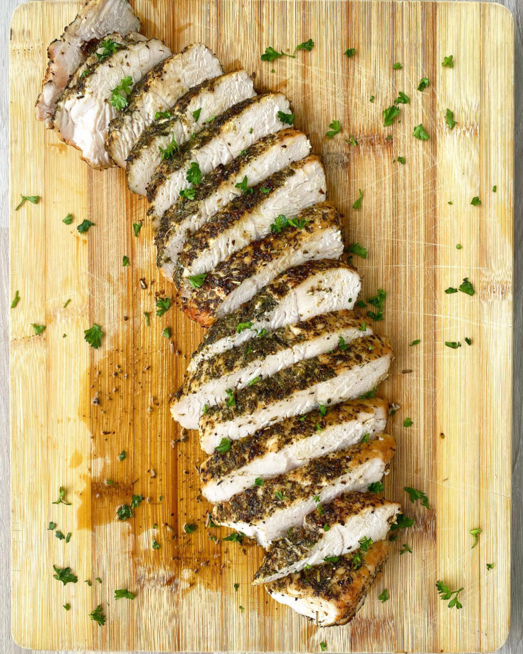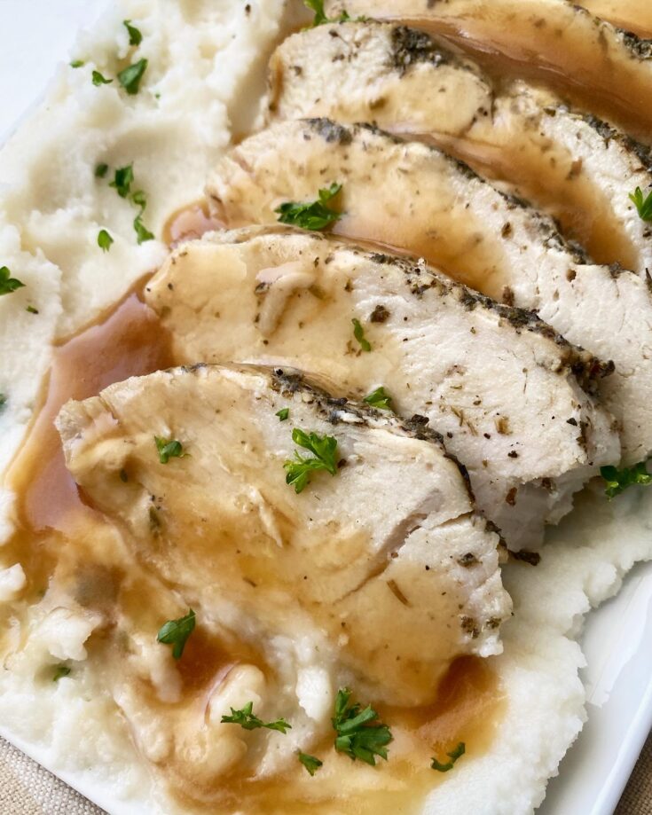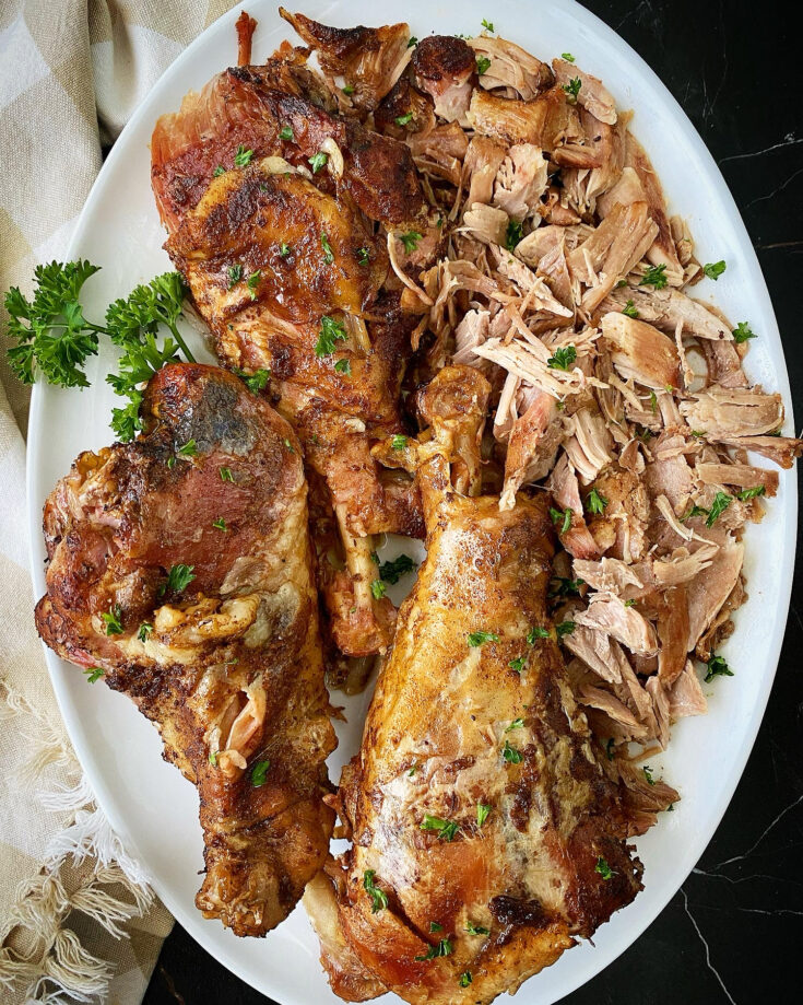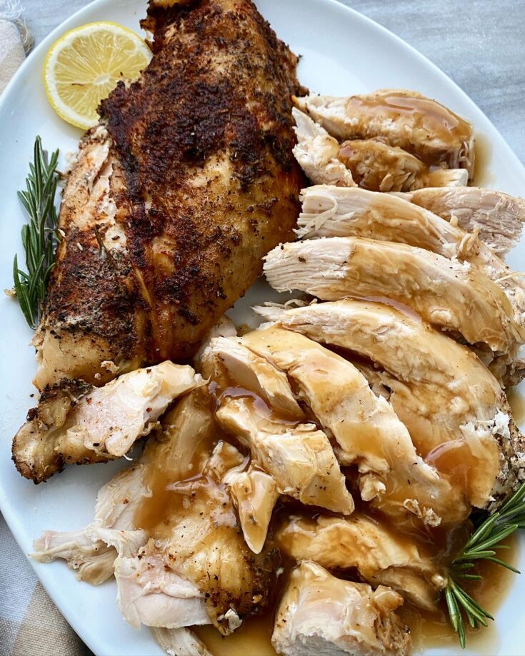 For the slow cooker, you will need to completely thaw the turkey it before cooking. To thaw your turkey, place it in a large roasting pan in the refrigerator (in its original packaging) for 24 hours per every five pounds of turkey. If you are cooking your turkey in the Instant Pot (or an air fryer), you can cook it directly from frozen, you’ll just need to add a few more minutes to the cook time.