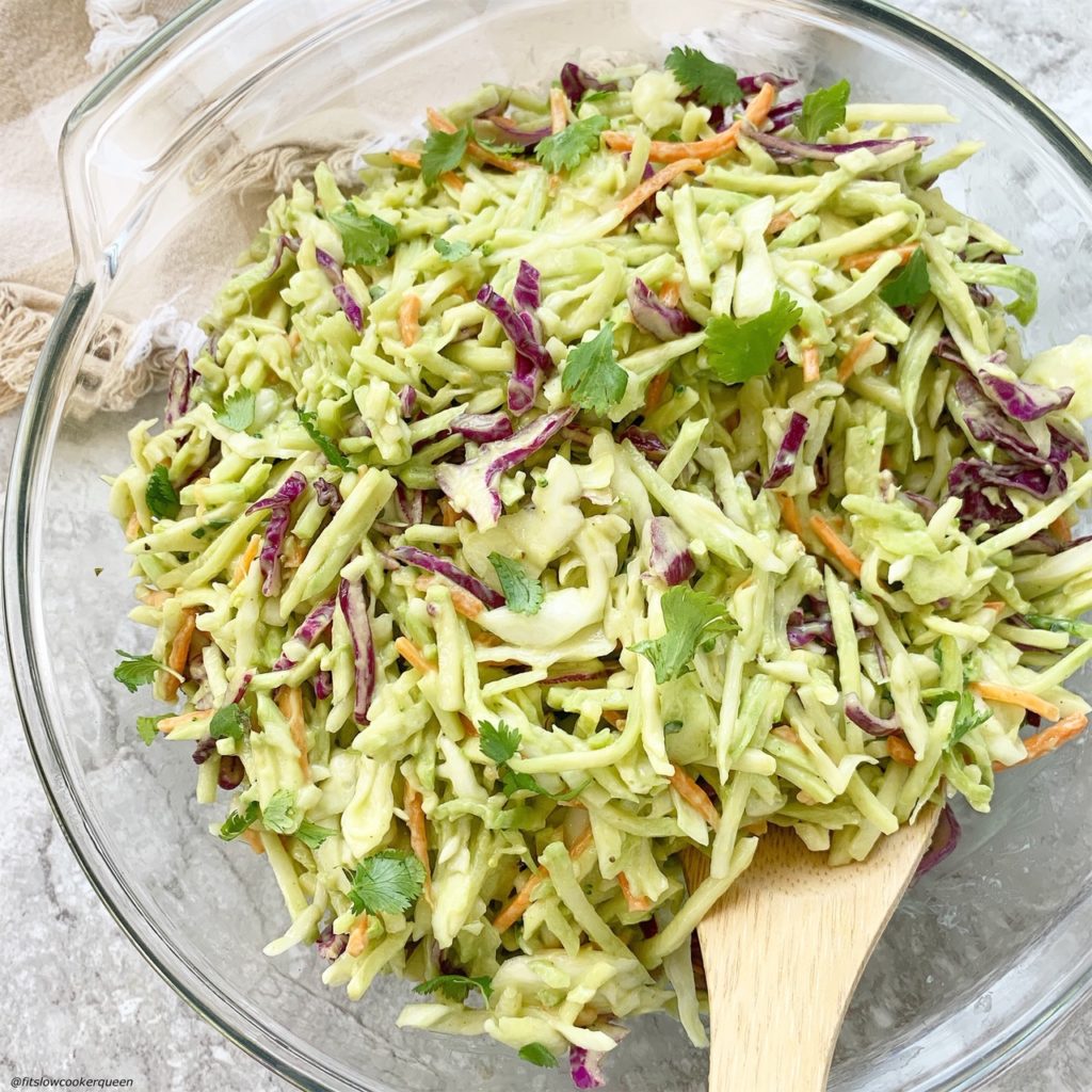 Avocado slaw is a healthy alternative to coleslaw that uses avocados instead of mayonnaise. This side dish is low-carb, paleo,